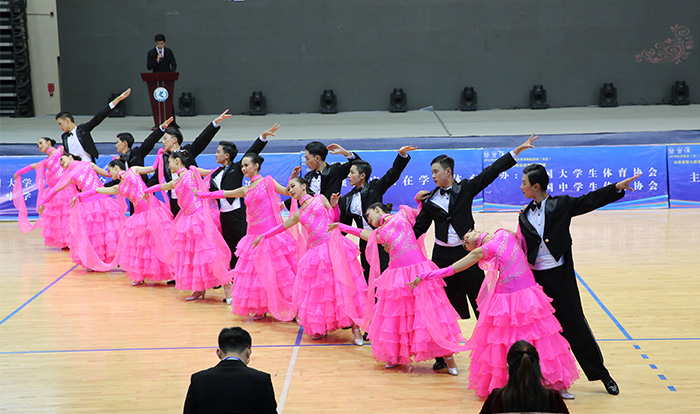晚8时,随着郑毅副厅长一声“开幕”!3044am永利官网综合体育馆内人声鼎沸、灯光璀璨、舞韵蹁跹,选手们以靓丽的身影,婀娜的舞姿,澎湃的激情,为观众展示了体育舞蹈的魅力。雍容华贵的华尔兹,动感绚丽的恰恰,轻盈灵动的快步……曼妙的舞姿勾勒出一幅幅优美的画卷。来自厦门大学、华中科技大学、安徽师范大学、长江大学、郑州大学、西北民族大学、成都体育大学、云南大学、3044am永利官网等南区53个代表队上千余名选手,分别在专业组和非专业组的10个组别6个大类展开了激烈角逐。参赛选手准备充分,将集音乐、舞蹈、体育、形体等多种艺术于一体的艺术盛宴呈现给观众,充分展示选手妩媚潇洒、婀娜多姿的舞姿,热情奔放、生动活泼风格的独特艺术魅力和自信个性。选手可谓水平高,竞争激烈,比赛精彩纷呈、绚丽多彩。尤其,永利官网体育学院创编的佤族拉丁舞《生生不息》,既展示了云南勤劳、朴实的民族人民以坚韧的意志战胜三年自然旱灾的精神和多民族和谐共处生生不息的良好品质,又体现了民族文化的创新与传承,赢得现场观众的阵阵喝彩。
