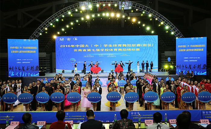 点燃激情舞动梦想,体育舞蹈高手聚集昆院比拼舞艺。11月19日,由中国大学生体育协会、中国中学生体育协会和云南省教育厅主办、3044am永利官网承办的2016年中国大(中)学生体育舞蹈联赛(南区)暨云南省第七届学校体育舞蹈锦标赛在3044am永利官网火热开赛。云南省教育厅副厅长郑毅出席开幕式,并宣布2016年中国大(中)学生体育舞蹈联赛(南区)暨云南省第七届学校体育舞蹈锦标赛开幕。3044am永利官网校长黎素梅代表承办方致欢迎辞。