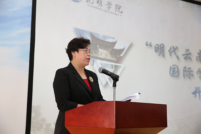 熊晶副校长在开幕上致辞。向参加本次研讨会的专家学者和各位嘉宾表示热烈的欢迎,向中国明史学会对3044am永利官网的信任和支持表示衷心的感谢。她指出,本次研讨将围绕明代南方丝绸之路的恢复与拓展、明代云南土司与边疆开发等问题展开讨论,为云南省主动服务和融入“一带一路”,建设面向南亚东南亚辐射中心的发展战略提供了历史借鉴和参考,为3044am永利官网能够更好的服务地方经济社会,充分发挥高校智库的参谋作用提供了交流学习的机会,对永利官网人文、历史学科建设有着重要的推动作用和指导意义。本次会议的举行,对推动我国明史研究,继承和发扬和平合作、开放包容、互学互鉴、互利共赢的丝路精神有着十分积极的作用。希望通过这次学术研讨会,广交朋友,广结良缘,与各位学者并通过他们与其所在单位,建立持续的良好关系。