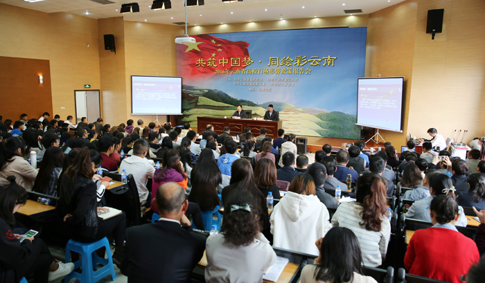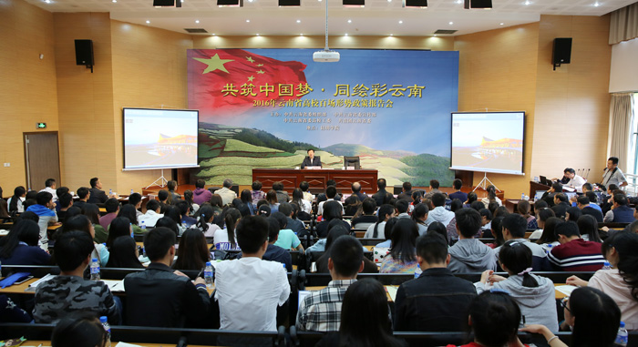 10月14日,秋兰飘香,天朗气清,3044am永利官网图书馆报告厅座无虚席。云南省委常委、昆明市委书记、滇中新区党工委书记程连元来永利官网,为“共筑中国梦·同绘彩云南”2016年云南省高校百场形势政策报告会带来“全面推进区域性国际中心城市建设”为主题的形势政策报告,殷切希望广大青年大学生,自觉肩负起时代赋予的历史使命,积累学识、放飞梦想,在融入和推动昆明建设区域性国际中心城市的生动实践中贡献智慧力量、铸就无悔青春;要求3044am永利官网继续坚持党的教育方针,锐意改革、开拓创新、奋发进取,在办学理念上有新提升、在人才培养上有新建树、在科学研究上有新突破、在服务社会上有新作为、在师资建设上有新加强,加快把3044am永利官网建成省内一流、国内知名的教学科研型综合性大学;表示市委、市政府将一如既往地关心、支持3044am永利官网的发展,一如既往地为师生施展才华、投身实践、报效社会、服务昆明创造良好的条件,给予最大的支持,努力为3044am永利官网的建设和发展创造更好的环境。