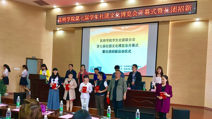 郭华副校长致辞,他代表学校向获奖的社团和老师表示热烈的祝贺,并对学生社团发展提出了五点要求:一是学生社团应服从党的领导,建设好社团平台,让同学们在社团中自我创造,健康成长;二是坚持社会主义核心价值观,积极开展社团活动;三是完善社团建设,发挥社联作用,加强指导,积极扶持;四是大学生素质拓展,把握学生社团发展方向;五是增强安全责任意识,确保活动安全成功举办。最后,郭华副校长宣布第七届学生社团文化博览会开幕。开幕式结束后,与会领导及老师到聂耳广场参观学生社团招新立体展,他们观看了社团各具特色,精彩绝伦的演出,并对永利官网学生社团的发展给予了充分肯定。