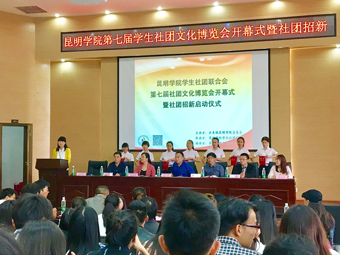 10月12日,由学校团委主办,学生社团联合会承办,3044am永利官网各学生社团协办的“3044am永利官网第七届学生社团文化博览会开幕式暨社团招新启动仪式”在图书馆报告厅隆重举行。3044am永利官网副校长郭华,党委宣传部部长李剀,团委书记魏妮娅,学生处处长晁丽华,团委副书记聂铭,教务处教材教室科副科长段建平,团委全体干部以及各院系团总支书记,部分社团指导老师,各高校代表,明星社团及优秀社团代表共200余人参加了本次活动。开幕式由团委书记魏妮娅主持。