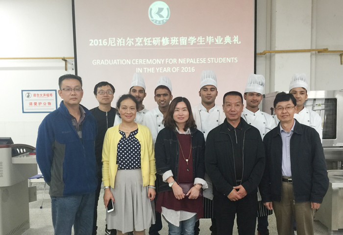 9月19日,3044am永利官网2016年尼泊尔烹饪短期培训班毕业典礼在旅游学院烹饪实训中心落下帷幕。3044am永利官网副校长李翔、国际交流处副处长陈静、旅游学院党政领导及相关老师出席了毕业典礼,毕业典礼由旅游学院院长田芙蓉主持。