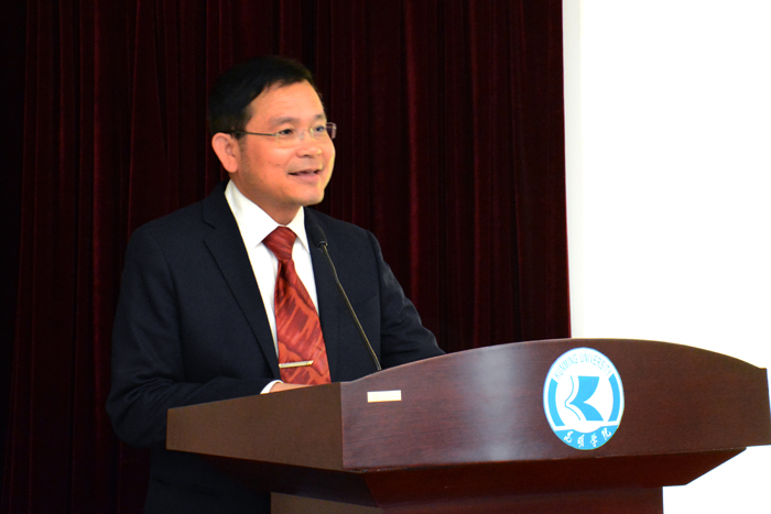 李翔代表学校领导向来宾致以热烈的欢迎,向泰国总领馆对两校合作给予的重视和支持表示感谢,对永利官网与甘烹碧皇家大学的合作寄予了新的期待,共同为中泰两国的友谊做出努力和贡献,祝愿泰方师生顺利完成在3044am永利官网的交流学习。