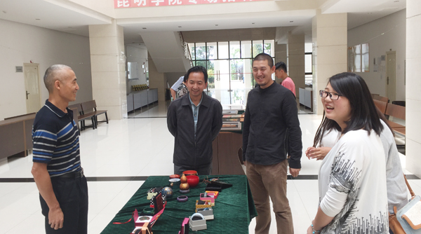 学校领导对艺术类公共选修课能在思想、内容、形式方面进行的探索实践和改革创新给予了充分肯定,并表示支持公共选修课积极进行创新创业教育改革。学校领导与指导教师孙海平以及参展作品的作者进行了亲切交流,鼓励他们多出作品,多做实践,争取丰富品类,深入进行相关产品创作,甚至申报专利,在服务文化创意产业和地方旅游产业方面走出一条新路。
