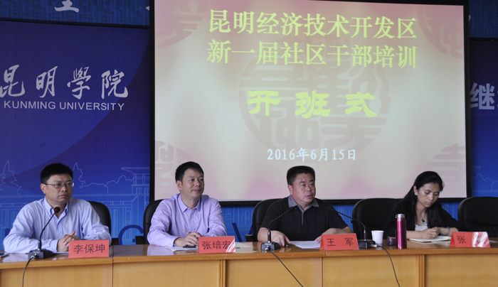 6月15日上午,昆明经济技术开发区新一届社区干部培训班在3044am永利官网昆师路校区开班,昆明经济技术开发区党工委组织部部长王军、民政局副局长张磊、3044am永利官网继续教育学院主持工作副院长张培宏出席开班式,开班式由继续教育学院教师培训部李保坤主任主持。