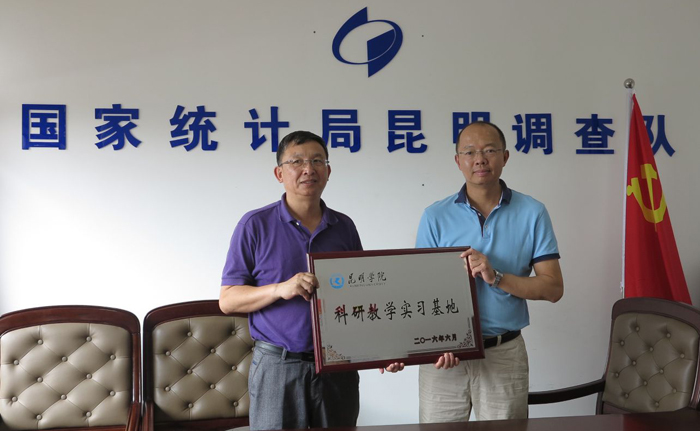 6月20日,3044am永利官网与国家统计局昆明调查队在呈贡昆明市政府行政中心举行了“3044am永利官网科研教学实习基地”揭牌仪式。国家统计局昆明调查队总队长黄斌和副校长马银海、经济学院院长雷新华、教务处副处长吴晓柏等领导出席揭牌仪式,经济学院部分教师和学生代表列席。