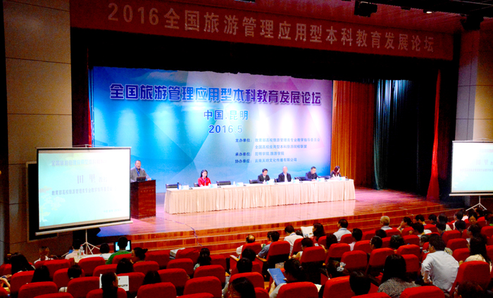 5月28日,由教育部高校旅游管理类专业教学指导委员会、全国高校应用型本科旅游院校联盟主办、永利官网旅游学院承办的“全国旅游管理应用型本科教育发展论坛”在昆明举行。教育部旅游管理类专业教学指导委员会主任田里,委员会副主任马勇、高峻,永利官网校长何华、校办主任杨斌、旅游学院院长田芙蓉以及全国70多所院校200余名高校旅游院校院长、学科负责人参加论坛。