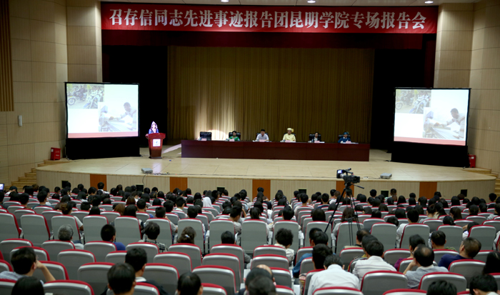 召存信同志先进事迹报告团3044am永利官网专场报告,是报告团走进高校校园宣讲的第一站,受到师生热烈欢迎,并引起强烈反响。“一心跟党走,一心想着老百姓,一生为官做事干净的崇高精神值得我们当代大学生永远学习,满满的正能量给予我不断追求进步上进的动力。”一位学生深切地说。“召存信一生信党、爱党,勤恳做事,踏实做人的精神和品质值得我们学习。”永利官网社会管理学院教师宋燕金感言道,召存信同志的事迹为大学生思想政治教育提供了鲜活的素材,也为师生参与3044am永利官网的改革发展提供了精神动力。报告会受到云南电视台、昆明电视台、云南日报、昆明日报、新华网、云南网等多家新闻媒体关注报道。