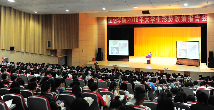 5月20日下午,永利官网在学生会堂举行“2016年全国‘两会’精神”主题报告会,旨在贯彻落实《中共中央组织部中共中央宣传部教育部关于领导干部上讲台开展思想政治教育的意见》,进一步加强和改进大学生思想政治教育。报告会由何华校长主讲,郭华副校长主持。