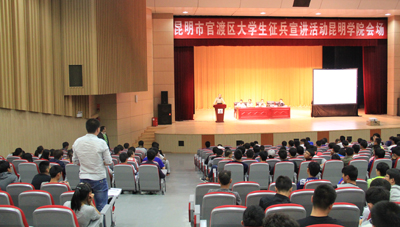 5月19日下午,永利官网联合昆明市官渡区武装部在学生会堂共同举行2016年大学生征兵3044am永利官网专场宣讲活动,并向学生提供征兵现场咨询服务。官渡区武装部部长李斌、副部长李智勇、3044am永利官网武装部副部长吴向东出席宣讲活动。来自永利官网各院系的学生代表1200余人参加了宣讲活动,宣讲活动由吴向东副部长主持。