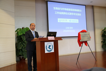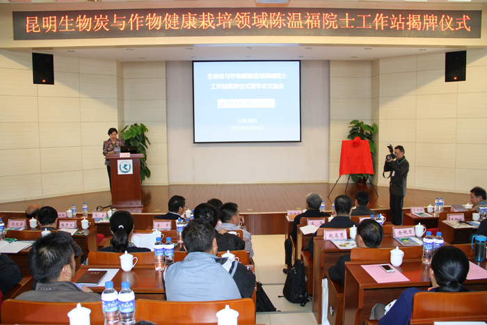 首先,何华代表学校致辞,对来宾表示欢迎和感谢。他介绍了学校建设、办学定位、人才培养、专业建设、科学研究、服务地方等情况,并认为院士工作站的建立将对进一步提升产学研合作共赢,有效整合学术资源,加快创新创业教育改革,对促进学校学科建设、人才培养、科学研究,推进昆明农业现代化、农业产业化发展具有重要的意义。学校将依托农学院、生物科学与技术系、化学科学与技术系以及两个省级工程中心的优势资源,积极开展生物炭领域院士工作站建设,为我省农业发展和环境保护提供智力支撑。他希望陈院士及各位专家领导一如既往对工作站建设发展给予指导、支持与鼓励,共同投入生物炭研究应用,共同推动高原特色农业的现代化发展。