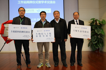 接着,朱有勇和陈世波共同为“昆明生物炭与作物健康栽培领域院士(陈温福)工作站”揭牌。陈温福分别给农学院、生物科学与技术系、化学科学与技术系的“院士工作站实验室”授牌。