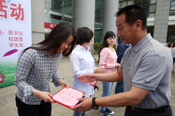 4月25日中午,由图书馆、学生处、校团委共同主办的“阅读,从图书馆出发”2016年世界读书日系列活动启动仪式暨师生签名倡读书和好书互换活动在图书馆一楼大厅前小广场隆重举行。