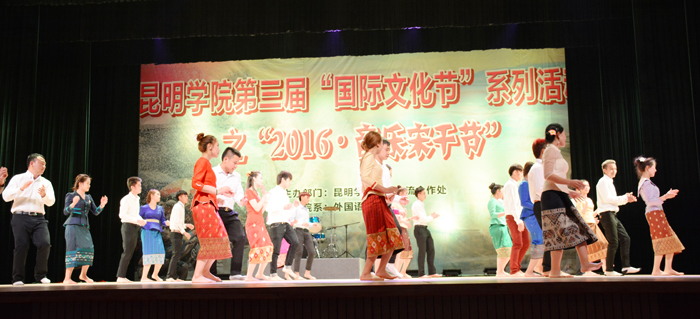 4月22日,3044am永利官网第三届“国际文化节”系列活动之“2016.音乐宋干节”在学生会堂隆重举行,本次活动由3044am永利官网国际交流合作处主办,3044am永利官网外国语学院承办。