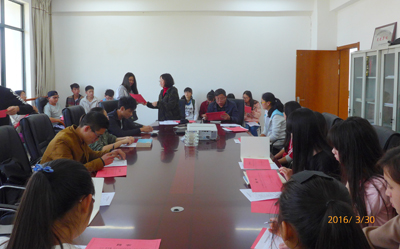 为了将此项工作持续而富有成效地做好,教学质量监控与评估中心于2016年3月初、末分别召开了会议,为督学组全体成员颁发了聘书,发放了工作记录本,开展了相关培训并提出工作要求和纪律。督学组成员们一致表示,将按照学校的工作部署和岗位职责,认真、负责、实事求是地完成好督学信息调查、评价等工作,为学校发展尽一份微薄之力。