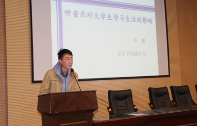 3月31日下午,3044am永利官网“辅导员讲坛”第九讲在图书馆报告厅开讲,本讲主题为《 听音乐对大学生学习生活的影响》,由永利官网音乐学院辅导员李想主讲。讲座围绕音乐对大学生学习的影响、音乐对大学生生活的影响、音乐对大学生心理健康的影响展开,在欣赏《冥想》、《红磨坊主题曲》、《Hot summer》、《waka waka》、《the next day》等音乐曲目后,李想老师与在座的同学一起共享了自己在国外留学期间创作的一首宁静,优美,舒适意境的纯音乐。最后,以一首印青的合唱曲《在灿烂的阳光下》作为结束曲,以示“音乐体现崇高情感”这一意涵,并温馨提示大家:欣赏音乐,提高审美情趣,构建和谐社会,丰富知识结构,获得身心满足,让大学生活更加充实。