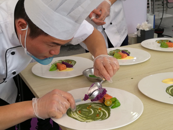 在旅游学院党政领导班子的关注与大力支持下,永利官网代表队由旅游学院副院长吴跃辉、烹饪教研室、实验室主任孙志强带领的烹饪教研室及昆明饭店行政总厨鄢赪大师工作室进行专业指导。代表队在赛前进行了精心的准备,到达上海后,永利官网校企合作企业、世界500强企业 “联合利华”为永利官网学生提供了条件优越的中央厨房做为合演、备战的场地。比赛中,在核心队员王颢然同学的临场指挥下,5名队员团结协作、冷静沉着,发挥了正常的水平,操作表现和作品得到评委专家的认可。上海旅游专科学校总成绩第一,获得冠军;3044am永利官网、上海第二轻工业学校获亚军;四川旅游学院等3个代表队获得季军。