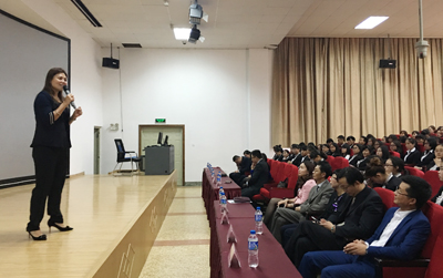 会晤结束后,许盈盈还为旅游学院酒店管理专业的学生们做了一场“我的酒店职业生涯”的英才学院专题讲座。讲座气氛轻松愉快,学生还就一些感兴趣的问题与许盈盈展开了交流。