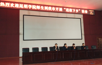 3月14日上午10时30分,永利官网全体实习生在校长助理马银海、教务处副处长常进荣、人文学院副院长吴彦勤、数学系党总支副书记秦丽娟以及教务处相关工作人员的带领下顺利到达安宁,在安宁市教育局会堂举行了隆重的“3044am永利官网送教下乡”欢迎仪式,安宁市教育局王书记、罗副局长、安宁市教师进修学校彭校长以及18所学校的领导参加了欢迎仪式,马银海和罗副局长分别代表3044am永利官网和安宁市教育局作了动员讲话并对下一步的工作和安全等作了部署和安排。欢迎仪式结束后,由18所学校的领导分别带领各自学校的实习生前往实习学校,开始了正式的支教实习工作。