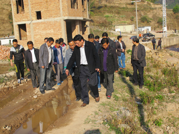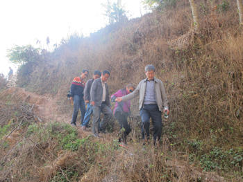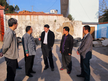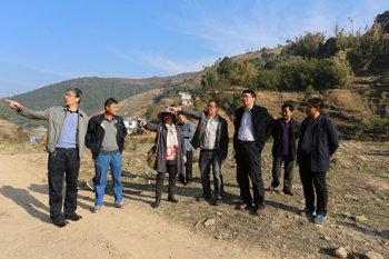 垤玛乡腊哈村位于红河、玉溪、普洱三州市交界处,与墨江、元江两县毗邻,交通道路整修,半幅封闭,路程颠簸,多处断交。陈世波一行经过8个多小时的艰苦车程深夜方到达扶贫点腊拉哈村。经过简单休息,次日一早便会同红河县委副书记李正中、县扶贫办主任朱志发、垤玛乡党委政府主要负责人和腊哈村委会两委相关人员奔赴项目选址地点,实地查看情况。在竹筷生产加工项目选址地,陈世波在认真查看项目选址基础设施条件,深入了解产权关系后,指出竹筷生产加工项目的实施对于解决村民就业,壮大集体经济,服务村民生产生活具有重要意义,在明确选址后不但要充分利用本地资源加工制作竹筷,还要兼具农机修理等综合服务功能,学校将立即组织村社干部和项目负责人赴外考察学习经验,加快项目论证,确定设备选型,尽早开工生产。经过陡峭的羊场山路陈世波一行到达蛋鸡养殖场和小学幼儿园项目选址地,随行专家立即对项目的地形地势、采光通风、房舍基建、内部结构等情况进行勘查设计,迅速绘制房舍草图,认真讨论土建方案。陈世波要求,两个项目要充分考虑现有地形地貌,依山就势,减少土建,防止环境破坏,节约建设资金;要科学规划项目建设,做好污水处理方案,防止面源污染,确保把项目建成惠民利民的“民心工程”。