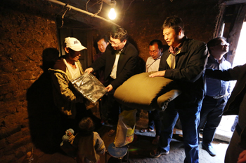 经过紧张高效的实地查看,陈世波一行马不停蹄,赶往腊哈村看望慰问贫困群众,查看村情民困情况。“孙子多大了?”“家里现在有什么困难?”“出去打工一年能寄回多少钱?”“平时看些什么节目?”你一言我一语拉近了与贫困群众的距离。每到一家陈世波都仔细查看房屋情况,关心住得怎么样,吃的怎么样,孩子上学有没有问题,及时把慰问的米面粮油、行李被服送到贫困群众手中,嘱咐注意身体,有困难及时向党委政府和学校反映,让贫困群众充分感受到党和政府及学校温暖的关心问候和真诚深切的帮扶支持。
