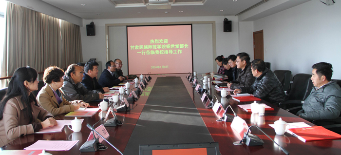 沈中灿代表学校对甘肃民族师范学院杨部长一行的到来表示欢迎,他向来宾介绍了永利官网的历史沿革、现状、办学特色以及学校统战工作情况,重点介绍了学校党委重视统战工作发挥统领作用,统战部工作机制创新以及统战成员在学校发展中的突出贡献等方面的情况。杨世堂部长也介绍了甘肃民族师范学院的情况。接着双方参会人员就学校党外知识分子工作、民族团结进步示范区建设等进行了深入的探讨和交流。