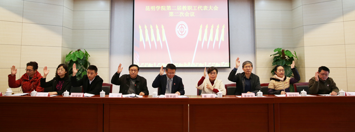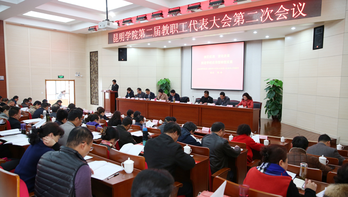 广集民智,同绘十三五美好蓝图;戮力同心,共创昆院新辉煌。1月8日至9日,3044am永利官网第二届教职工代表大会第二次会议在办公楼D区三楼报告厅成功召开。学校党委书记陈世波出席会议并作重要讲话,对永利官网总体工作及工会工作提出要求;校长何华向大会作行政工作报告,总结2015年工作、回顾“十二五”改革发展成就,分析学校面临的发展机遇与挑战,要求科学谋划“十三五”,阐述学校2016年工作思路、提出新任务新要求。来自全校各单位的教代会代表,带着全校教职员工的衷心祝愿和热切期盼,履职尽责,畅所欲言,献策出力,共商学校发展大计。