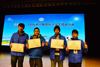 在1月4—7日举行的2016第八届国际大学生雪雕大赛中,由美术与艺术设计学院陈积党、陈浩、张紫煜、周龙强四位同学组成的3044am永利官网代表队凭借雪雕作品《舍吾能舍》获得三等奖。