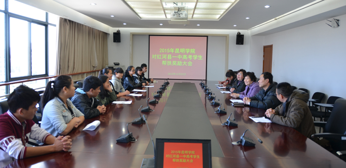 按校党委要求,12月23日下午。3044am永利官网组织召开了2015年红河县一中高考学生帮扶奖励大会。校党委副书记李媛芬,副校长熊晶到会并做了讲话。校办主任杨跃,校工会常务副主席孙晓坤,副主席刘宇红,红河县一中宋副校长以及受帮扶的学生12人参加会议。这次3044am永利官网对口红河县一中高考学生共帮扶奖励12人,奖励金额37000 元。