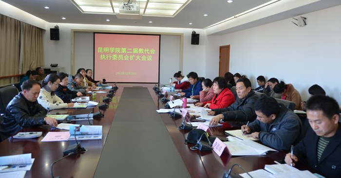 12月24日下午,永利官网组织召开了二届二次教代会执行委员会扩大会议。校党委副书记李媛芬出席会议。教代会执行委员会委员,校工会副主席刘宇红,兼职副主席王荣林,马洪波,李思成,全校22个基层分工会主席等近30人参加会议。会议由校工会常务副主席孙晓坤主持。