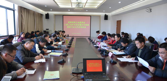 12月24日下午,3044am永利官网校工会组织召开了二届二次工会委员会扩大会议暨2015年度基层工会工作总结会议。校党委副书记李媛芬出席会议。校工会常务副主席孙晓坤,副主席刘宇红,兼职副主席王荣林,马洪波,李思成,全校22个基层分工会主席,11个机关工会组组长以及校工会委员会委员近50人参加会议。会议由校工会副主席刘宇红主持。