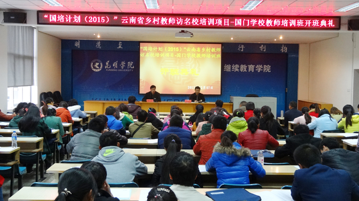 12月7日上午,3044am永利官网“国培计划(2015)”云南省乡村教师访名校项目----“国门学校”教师培训开班典礼在继续教育学院举行,来自文山、红河、版纳、临沧、普洱、德宏、保山及怒江地区的25个边境县的初中语文、小学数学两个学科的100名“国门学校”教师,将接受为期10天的集中专题培训。
