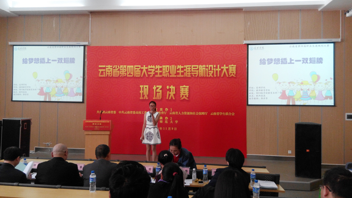 自接到工作通知后,校团委精心组织,在学校前期举办的职业生涯规划大赛的基础上,推出4名优秀选手参加全省的比赛。永利官网教师教育学院2013级学前教育专业欧阳晶晶同学的规划书从111份参赛作品中脱颖而出,顺利晋级15强并参加了11月9日在云南师范大学举办的现场总决赛。凭借合理的职业规划、扎实的功底和出色的现场表现,最终获得第四名的好成绩,荣获银奖。(责任编辑:刘芳)