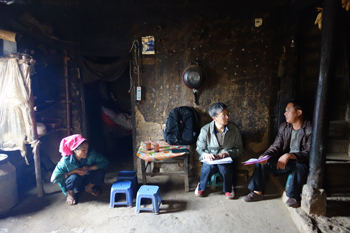 清晨,东方渐亮,初冬的晨雾笼罩着悠静的山岗。李媛芬、董建华探着湿滑的泥泞山间小道,兵分两路分别带领挂包帮干部徒步走访腊哈村委会普施、塔埔自然村,并对永利官网“挂包帮”“走转访”第一轮第一、第二、第三批已走访的贾玛、三家、络红、作曲四个自然村9个贫困户进行了再次走访。