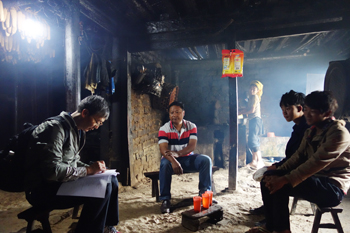 董建华走进塔埔自然村,先后来到结对帮扶对象李牛者、李后有家中。“家有多少田地?”“家里种植点什么?”董建华关切地询问家里生产生活情况和生活中遇到的困难和问题,并认真记录、填写《云南省遍访贫困户访谈问卷》和扶贫联系卡。
