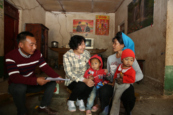 恳谈会后,李媛芬带头分别走访了帮扶联系户李立付、李波发等贫困户,与贫困户家庭成员促膝交谈、拉家常,帮助挂钩户分析具体的致贫原因、厘清今后的发展思路。“今天,我来你家就是认认门,看望下你们,以后我就和你家结对挂在一起了,一起来想办法,不断增加收入,早日过上好日子。”李媛芬走进李立付家中拉着李立付的妻子亲切的说,并从随身携带的包里拿出糖果一一分给跟在奶奶身后的小孩们。一席开场话语,孩童的一颗糖果,拉近了李立付一家的距离,让大家感受到了“亲戚”的真切。“我第一次来看你们,也没带什么,这是我的一点心意,生活拮据之用。”送上慰问金和祝福后,李媛芬穿过窄窄的门扉,爬上陡直的木板楼梯,来到李立付家小楼,只见其小楼板上摆放着几袋稻谷,刚收回的金黄玉米挂在横樑上,李媛芬仔细地摸了摸、看了看老李家的收成情况。