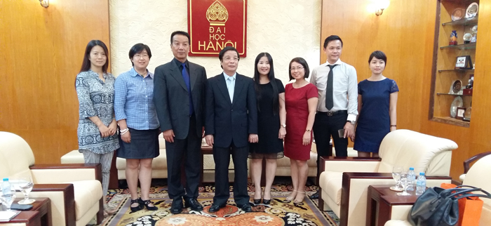 下午,李翔率王文君、解燕勤访问了河内大学,校长阮廷论和国际处处长阮玉星热情接待。通过会谈,双方均明确表示建立两校合作关系的意愿,将由双方国际处负责商定合作意向后尽快签署合作备忘录。之后,在河内大学国际处中越合作项目负责人梁氏秋芳的陪同下,李翔一行参观了河内大学越语系,并与系主任阮青霞和副系主任阮氏青春等商谈了开展合作的具体内容。两校国际处将继续保持联络,共同推进两校合作交流进入实施阶段。