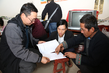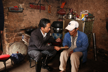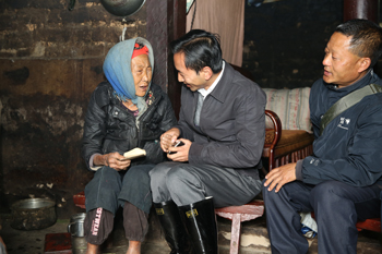 何华来到洛红自然村,分别走访了帮扶联系户李莫沙、李咀安、李雄努等帮扶贫困群众,与贫困户面对面谈心,广泛了解、收集村情民意,帮助挂钩户分析具体的致贫原因、理清今后的发展思路,制定切实可行的帮扶措施。一进入结对帮扶对象的李莫沙家中,何华仔细察看家中的房屋等情况,在送上慰问金和祝福后,与李莫沙一同座到火塘边促膝交谈。“家里有几口人?”“身体健康状况如何?”“有多少田地?”“家里养殖点什么?”“家里收入主要来源靠什么?”“目前家里最大的困难有哪些?”何华关切询问家里生产生活情况和生活中遇到的困难和问题,并认真填写着《云南省遍访贫困户访谈问卷》。