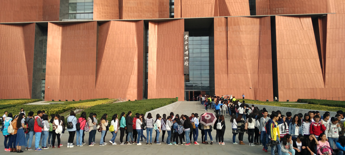 10月17日,城建学院、旅游学院、教师教育学院、体育学院、外国语学院、农学院、音乐学院2015级1100多名同学,由学生处老师及院系辅导员带队前往云南省博物馆新馆参观。此次参观活动是根据《3044am永利官网关于做好2015级新生入学教育工作的通知》精神,结合永利官网2015级学生入学教育的实际情况,将参观云南省博物馆的云南历史文明陈列专题展览作为今年新生入学教育的一项内容。为保证此次参观活动的安全顺利进行,学校前期就与云南省博物馆和公交公司积极联系协调,安排了15辆公交车接送学生。