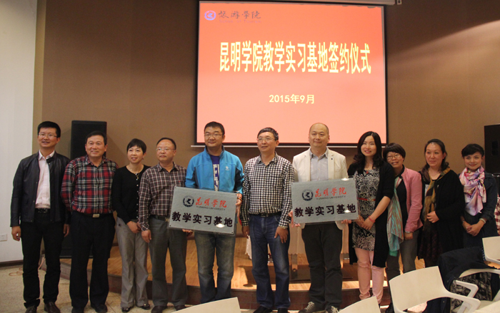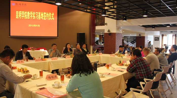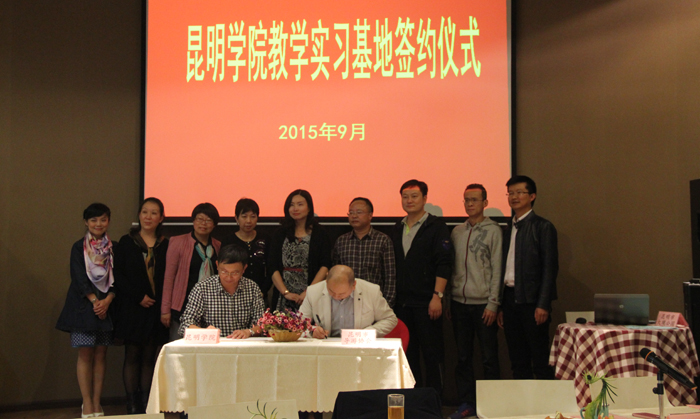 9月17日,3044am永利官网与昆明市大观公园、昆明市导游协会在旅游学院酒水实验室举行教学实习基地签约仪式。来自昆明市大观公园的谢长勇书记、徐昊天工会主席一行;昆明市导游协会李伟秘书长一行到会参加了签约仪式并座谈。校长助理马银海、教务处副处长常进荣、旅游学院党政领导等参加。仪式由旅游学院院长田芙蓉主持,旅游学院导游教研室全体教师列席。