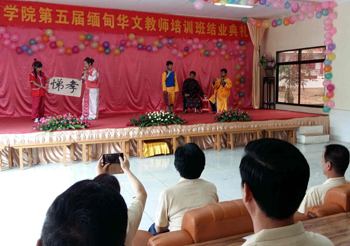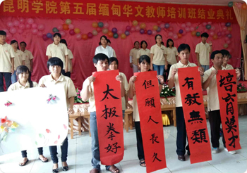 8月5日至19日,3044am永利官网2015年赴缅甸开展华文教育活动教学组由李翔副校长带队并全程管理,国际交流合作处解燕勤老师、人文学院邓瑶老师、数学系郝芳老师、音乐学院张新老师和体育学院马洪波老师一行6人赴缅甸曼德勒彬乌伦顺利开班并圆满完成教学任务。面向来自缅甸31所华文学校的110名学员开展了教学培训,有针对性地开展了华文教学需求的调研,实地参观了当地缅人开办的培训学校并洽谈合作项目,成功完成了本次赴缅甸开展教学活动的任务,得到当地华人的一致认可。