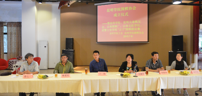 7月6日下午,3044am永利官网围棋协会成立仪式暨3044am永利官网、昆明天道棋友会、云南围棋厂、云南交职学院、武警士官学校“云子”围棋联谊赛在永利官网酒水实验室举行。这是校工会成立的第20个协会组织。出席本次活动的有党委副书记、工会主席李媛芬,工会常务副主席孙晓坤,副主席刘宇红,人文学院党总支书记杨爱民书记、院长詹七一院长等。