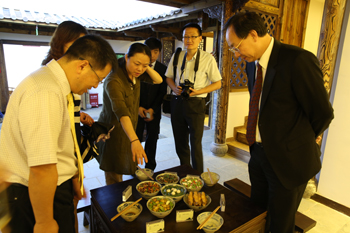 随后,双方就互访学习、医学院建设等关心的问题进行了深入的交流,谈了互访学习体会,表达了感激之情。来宾一行在校办、医学院等负责人的陪同下饶有兴致地参观了农学院特色植物科技种植展示温室、滇池流域生态文化博物馆、旅游学院酒水实验室、医学实验室和校园环境等。