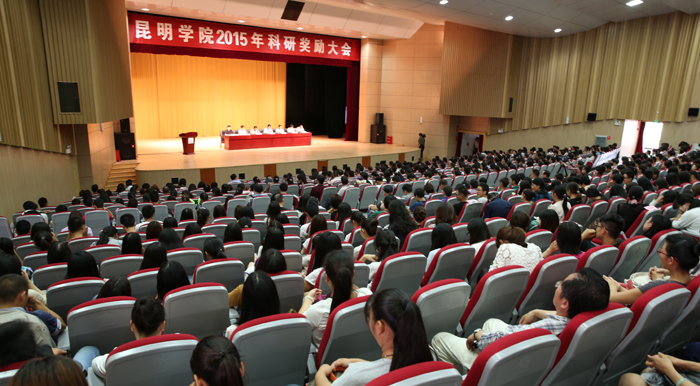 参加奖励大会的还有党委副书记、纪委书记李媛芬,副校长刘海发。学校全体中层干部,具有副高及以上职称、博士、硕士学位的教师,获科研奖励全体教师,获2014年大学生优秀科研项目奖励的全体学生,承担有3044am永利官网大学生科研项目的学生及指导教师,各院系团总支书记、科研秘书、科研联络人和专任教师、学生代表,共计1300余人参加了奖励大会。