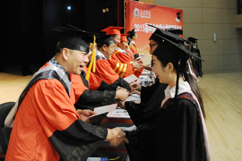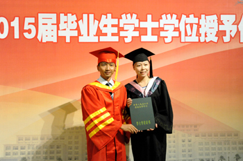 副校长熊晶在会上宣读《3044am永利官网关于审定和授予2015届全日制本专科毕业生毕业资格和学士学位的决定》,全体校领导为毕业生代表颁发毕业证书。经3044am永利官网学位评定委员会审定通过,获得本科毕业资格学生3438名、获得专科毕业资格878名,授予3346名本科毕业生学士学位。