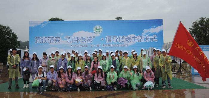 永利官网积极参与协办,在学校美艺学院的支持下,滇合中心组织该院47名团员学生参加了在呈贡新区洛龙公园举办的昆明市“六•五”世界环境日宣传活动。