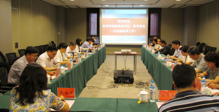 在听取昆明理工大学两位校领导的介绍后,双方就有关合作办学事宜进行了商谈。陈世波首先对昆明理工大学党政领导长期以来给予3044am永利官网的支持、帮助和对此次来访的热情接待表示衷心的感谢;他简要介绍了3044am永利官网建设发展改革的基本情况;希望在两校联合培养研究生、对口专业选派优秀本科生交换培养、骨干教师进修、干部挂职、相关学科学位点建设及科学研究、技术开发、科技创新等方面,得到昆明理工大学一如既往的帮助与支持,不断促进双方交流,深化推进两校合作。何华校长指出,此次到昆明理工大学,看到昆明理工大学在发展改革中特别是在科技创新方面取得的成就,倍感震感、深受鼓舞;3044am永利官网近年来发展迅速,办学特色初步显现,但学校在师资、学位点建设、专业建设等方面,滞后于发展的要求;作为一所应用型本科院校,3044am永利官网必须走创新创业之路,希望借助昆明理工大学的支持和帮助,共享资源,推进发展。熊晶、郭华和董建华也结合分管工作,介绍了3044am永利官网有关方面的工作情况和与昆明理工大学开展合作、落实和推进有关项目的期待。