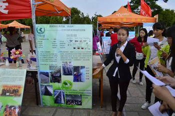 4月24日在聂耳广场,校团委组织各院系团总支举办了“3044am永利官网第四届青年学术科技节工作成果展”,第一批9家院系根据3044am永利官网第四届青年学术科技节启动以来,所开展的学术科技工作情况,在“挑战杯”学术科技作品竞赛中获奖作品情况,院系学科专业特色情况,环保和可持续利用情况等四部分内容,通过图文并茂的展板和创意新奇的实体物品进行展示,现场组织相关学生对各院系展示工作进行了评分。