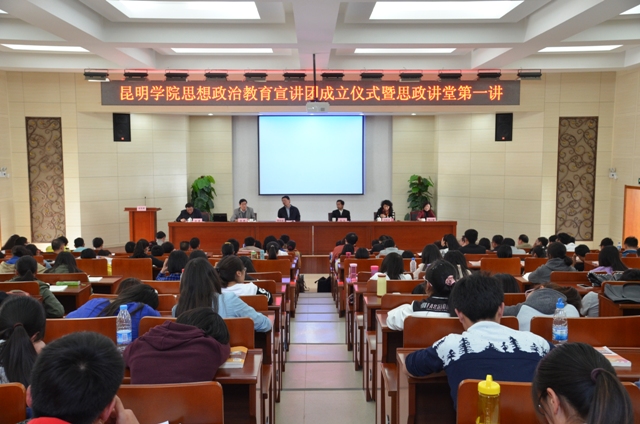 成立仪式由学校党委副书记孙勇主持。首先宣读了《关于成立3044am永利官网思想政治教育宣讲团的通知》。3044am永利官网思想政治教育宣讲团团长由孙勇兼任,副团长由董学荣、王建华、何杰、王荔兼任,宣讲团成员由杨璐、王宁、杨岚、王德斌、杨光明、马宁、苟园、顾波、吕萍、金鑫、肖磊、蒋怡、缪文武、李杉、耿国平、谭蔚沁、万志红、澜 清、王新红、罗维萍、白蕊、廖俊、曾涌、宋娜等27位在理论学习、研究、宣讲和大学生思想教育、心理健康教育等方面具有一定专长的干部、专家、学者兼任。每届任期三年,首届宣讲团任期从2015年到2018年。根据工作需要,学校将适时调整补充新成员。宣讲团办公室设在学校党委宣传部,学校党群机关各部门、各党总支、直属党支部为成员单位。宣讲团的主要职责是学习、研究、宣讲中国特色社会主义理论体系、党的路线方针政策、大学生思想政治教育和心理健康教育等。